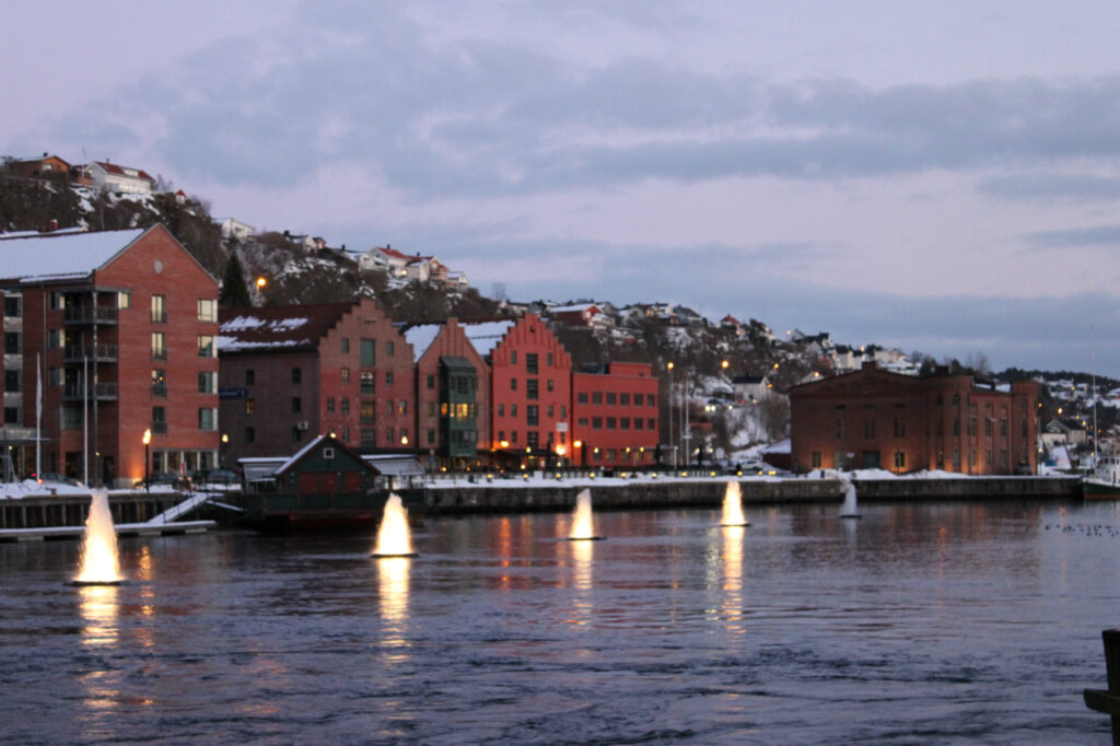 Skien Sjømandsforening har lokaler i bygning nr. 3 fra venstre, 3. etg på bildet.