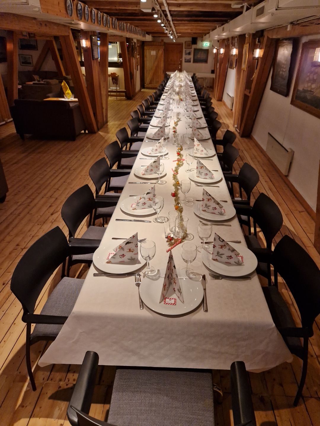 Lokalet er  på 130 m2 + bysse (kjøkken) 23 m2 og det kan dekkes på til 50 gjester